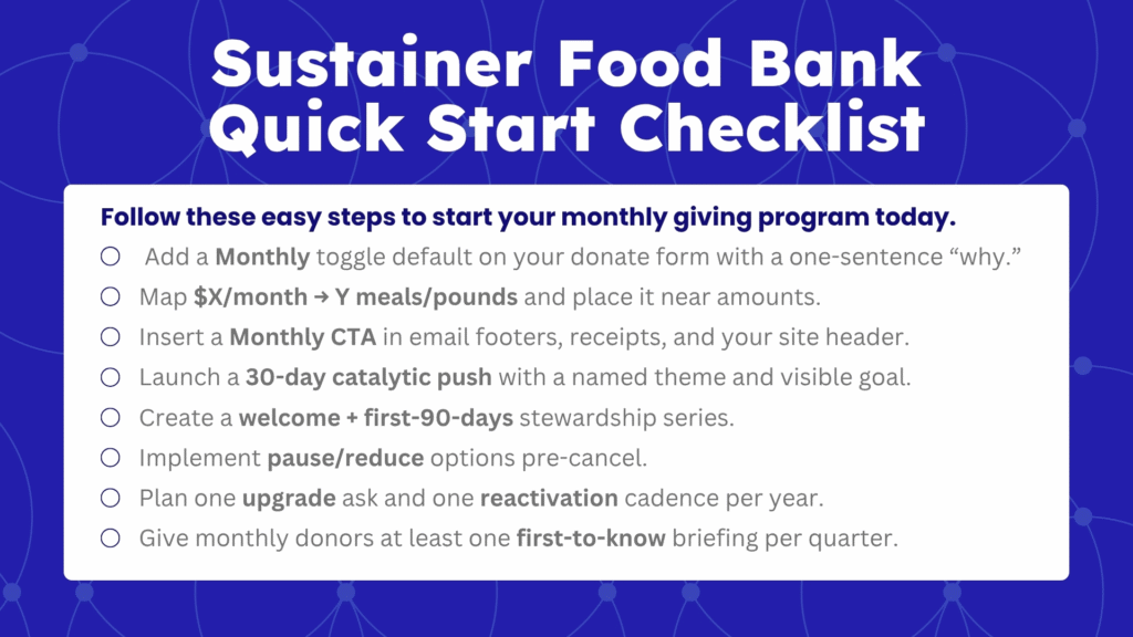 - Add a Monthly toggle default on your donate form with a one-sentence “why.”