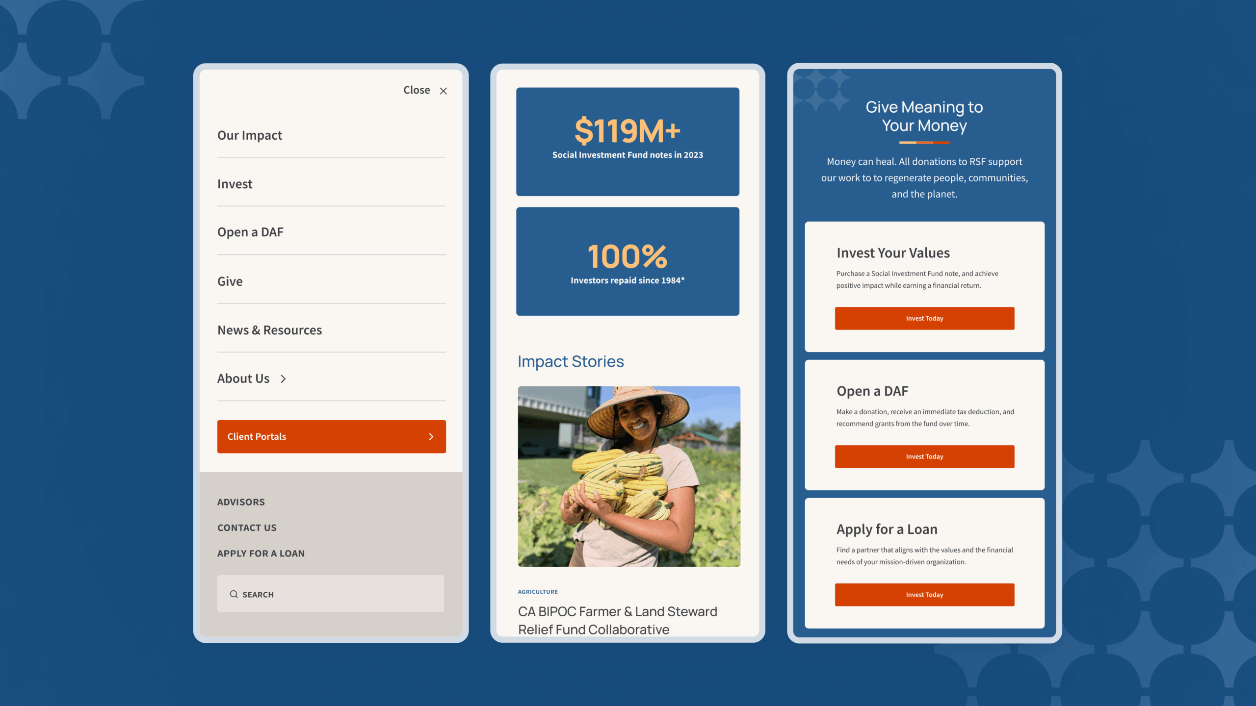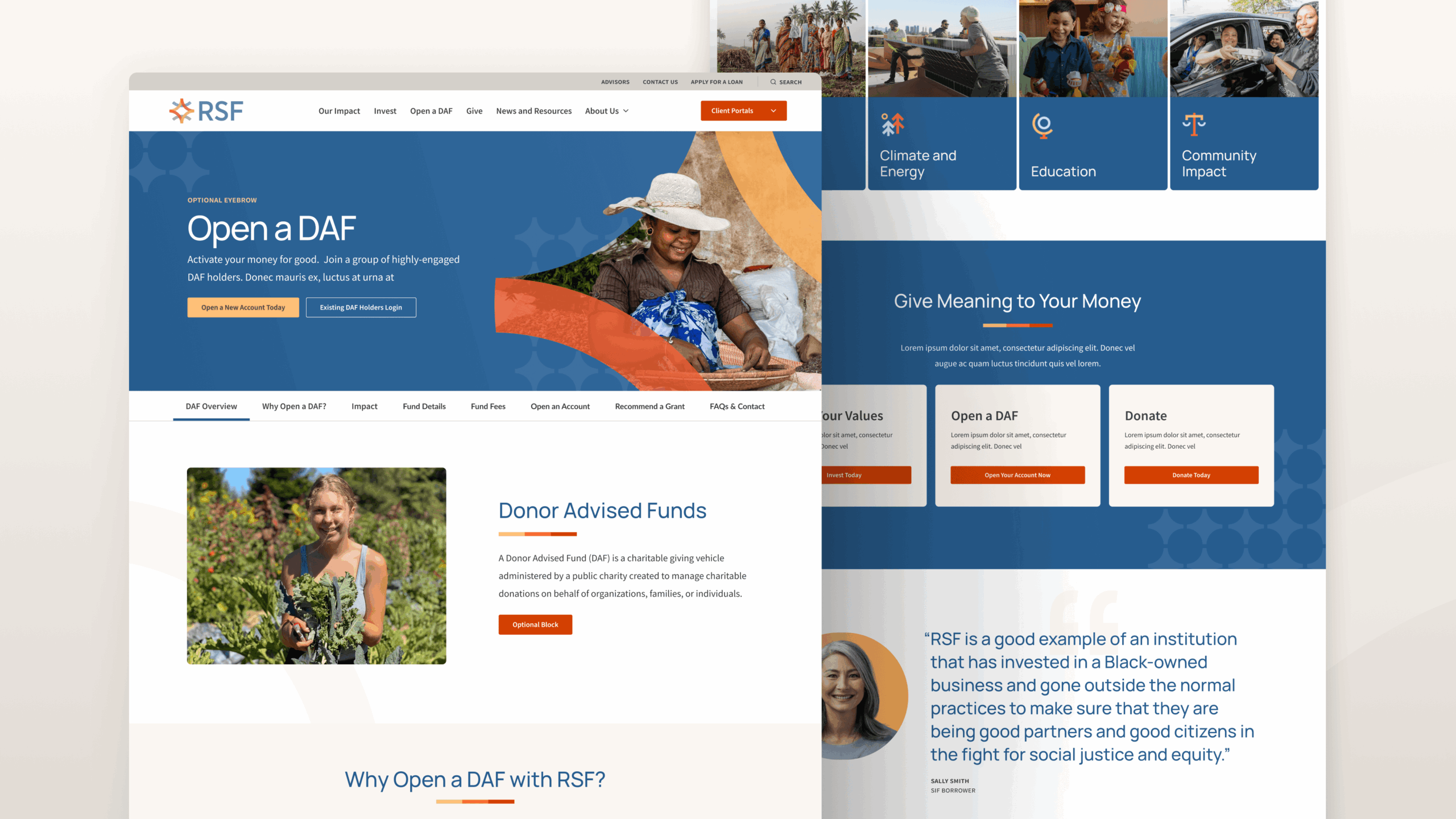 RSF has been transforming finance since 1984, channeling over $1 billion into organizations tackling the world’s toughest problems. Their mission: to shift from an extractive economy to one that heals and regenerates. But their old website didn’t reflect that bold vision — so they partnered with us and Do Good Better to build one that would.