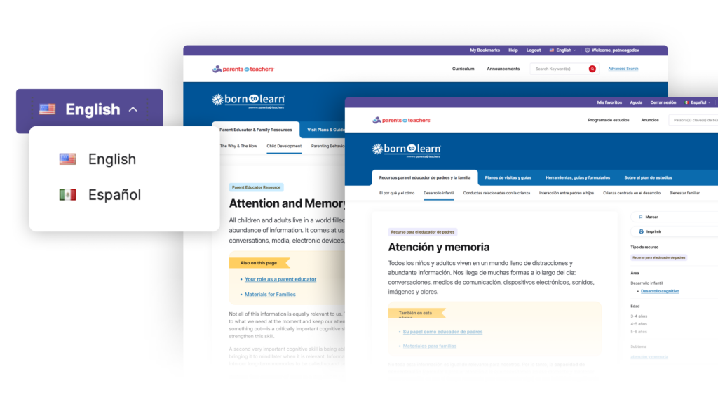 - Language Preference – Parent Educators serve diverse families and come from diverse backgrounds themselves. Accessing educational resources in their preferred language allows them to engage with and retain information more effectively. Translation of the website’s UI and the content is automated by a custom AI tool built by AGP.